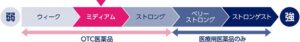 ちょうど真ん中くらいの強さでしょうか。私は以前脱毛症になって、頭皮も痒くてその時もステロイドを使っていたので、安全性など気になるところですが、医療用医薬品よりは強くないですね。なのであまりにも痒みがひどい場合には病院で治療するのがいいと思いますが、ちょっとした痒みが続いてるとか即効性を感じたい人にはいいのかもしれません。※医師ではなく、個人の見解です。